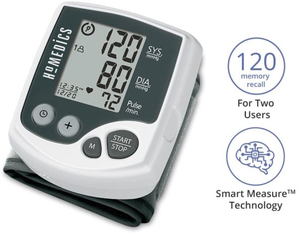 HoMedics Automatic Wrist Blood Pressure Monitor | 2 Users, 120 Stored Readings, Memory Average Function | Fast Accurate Readings, BONUS Protective Case Included